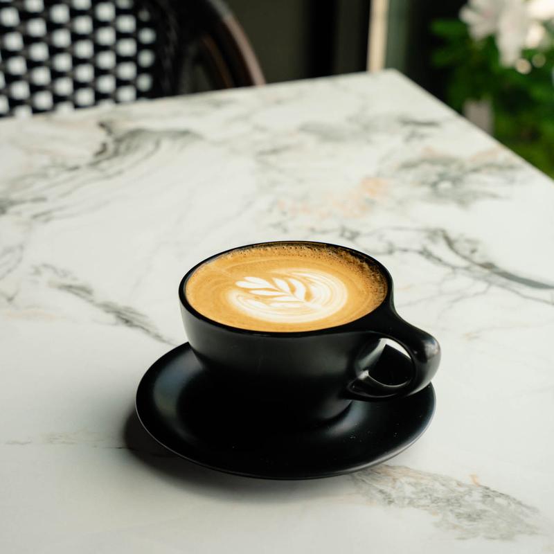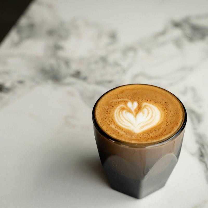 Creamy latte with barrel-aged maple syrup.